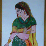 Acrylic painting depicting girls putting up mehndi to a bride... embellished with stones..